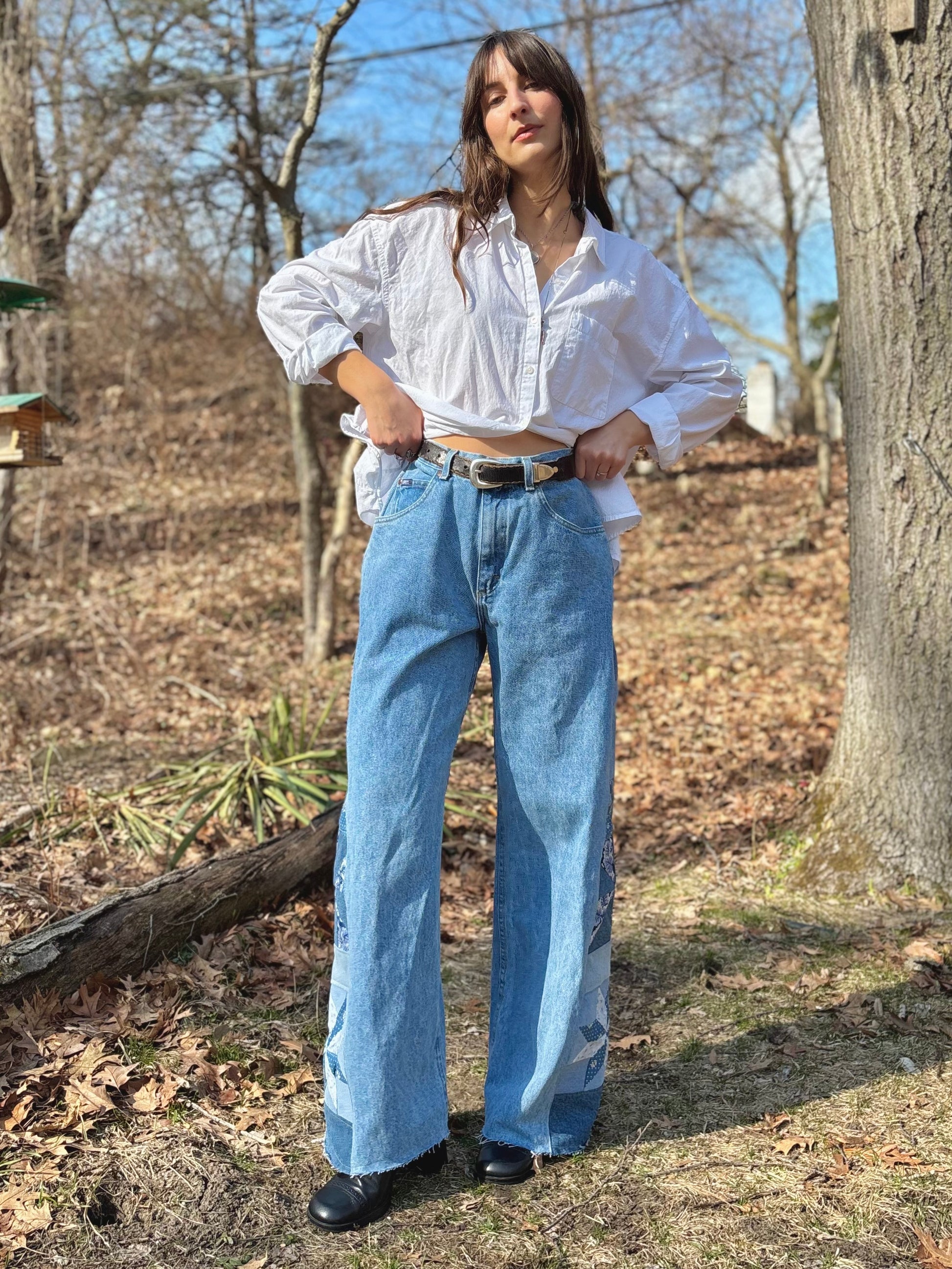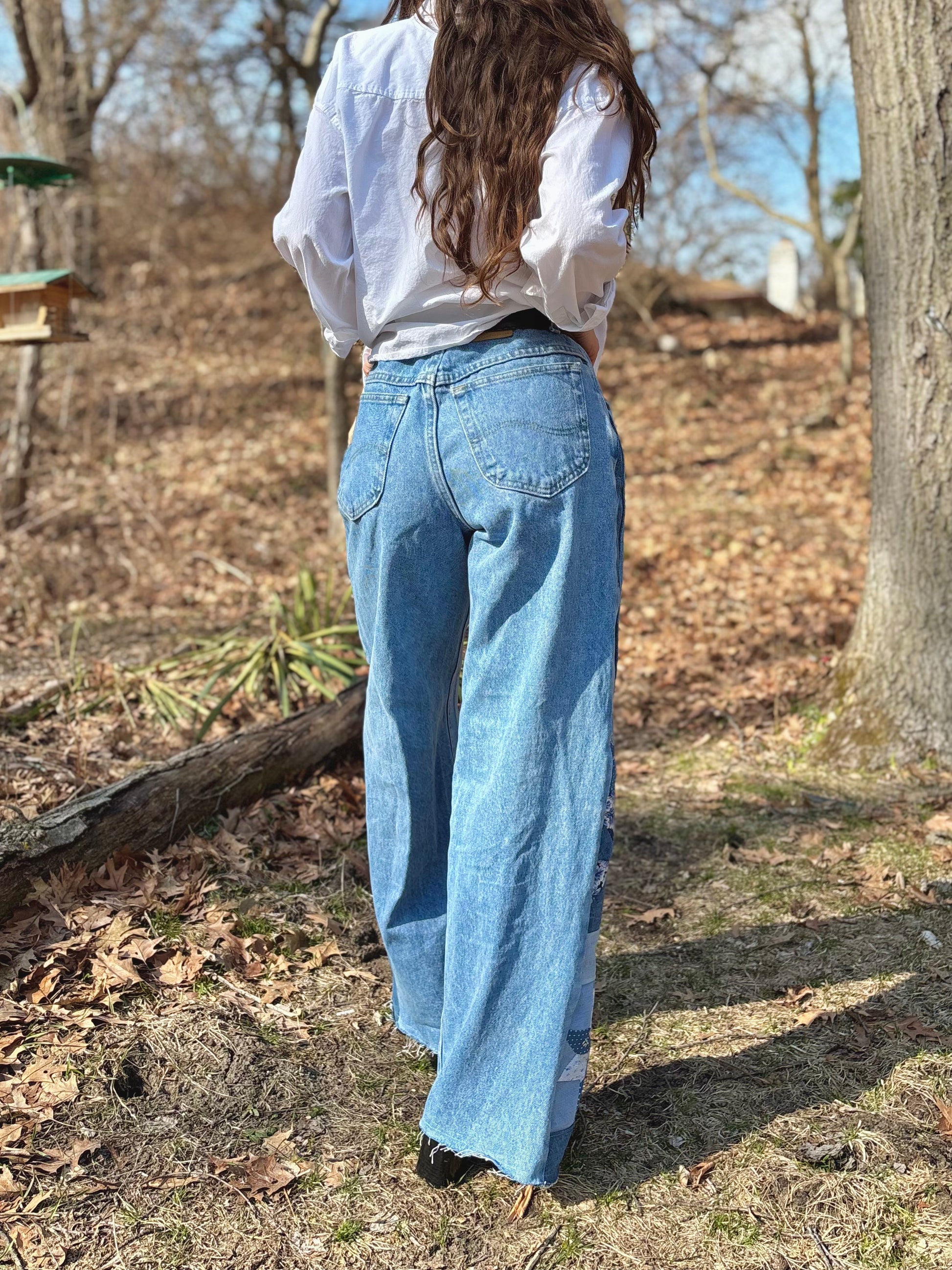 - Light wash Lee jeans, converted into wide-legs, beautiful condition, hardly worn