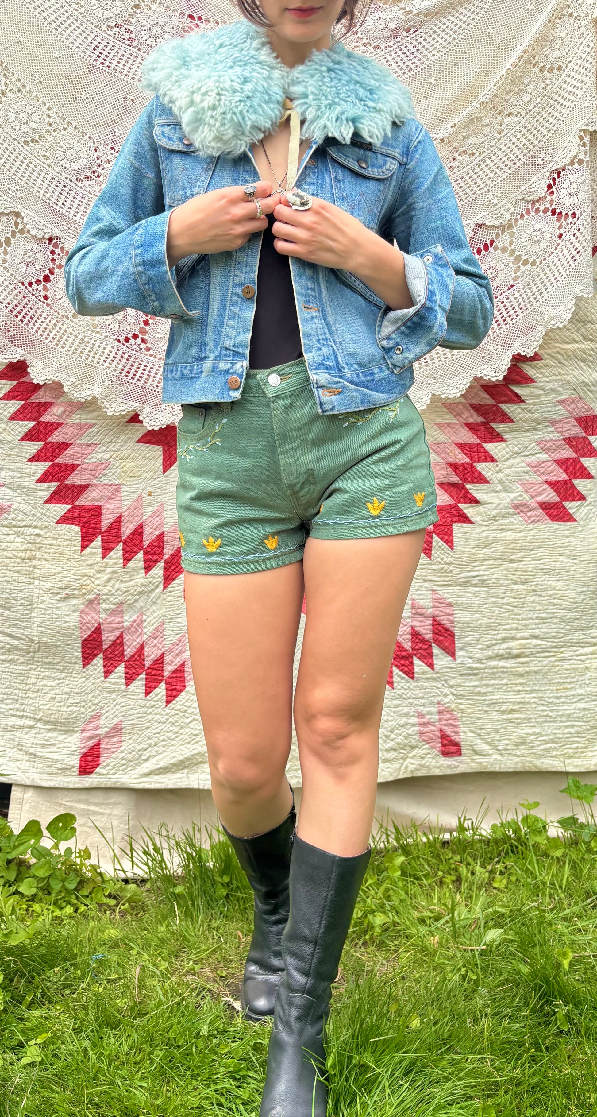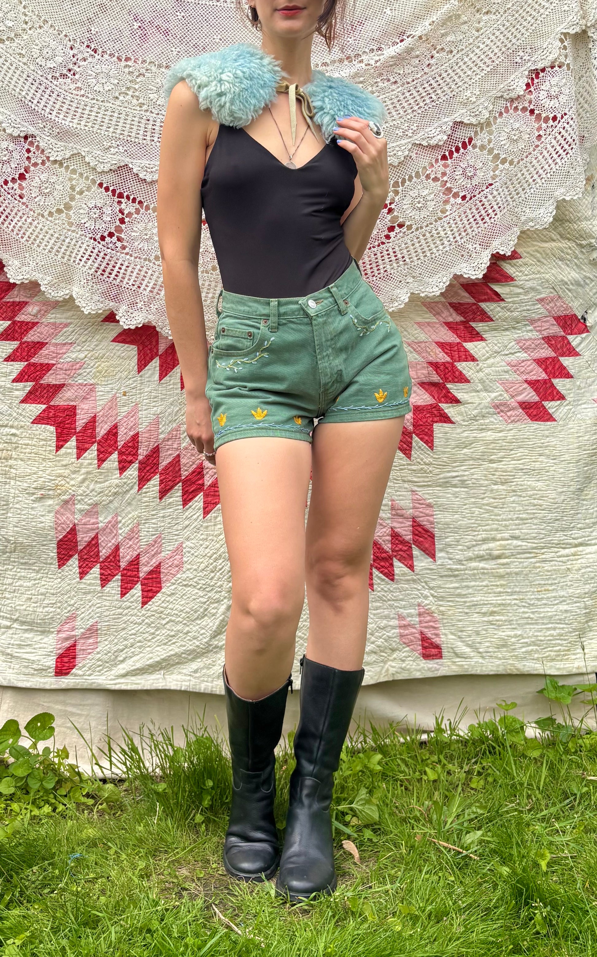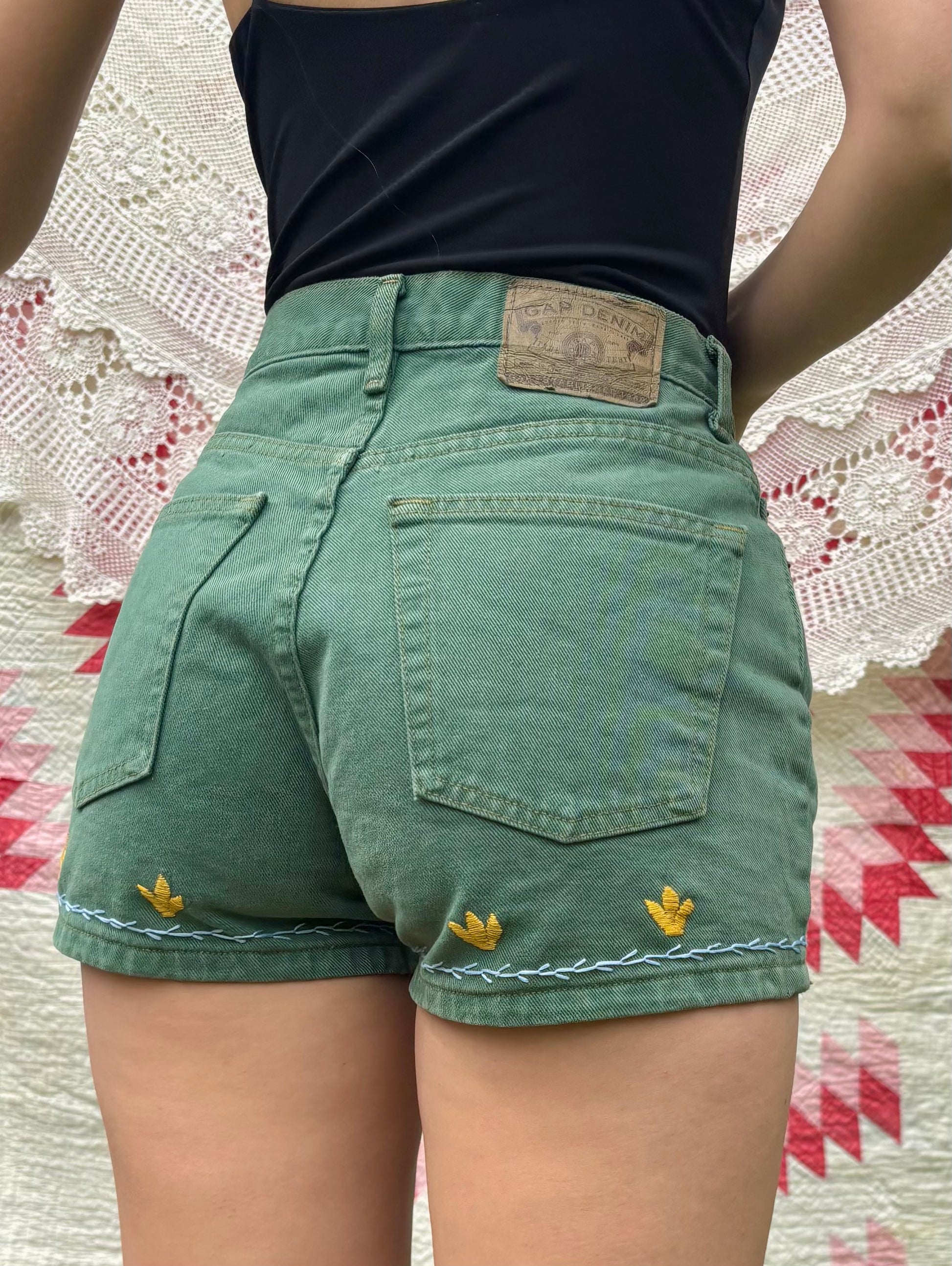 Fern Green Embroidered Tulip Shorts