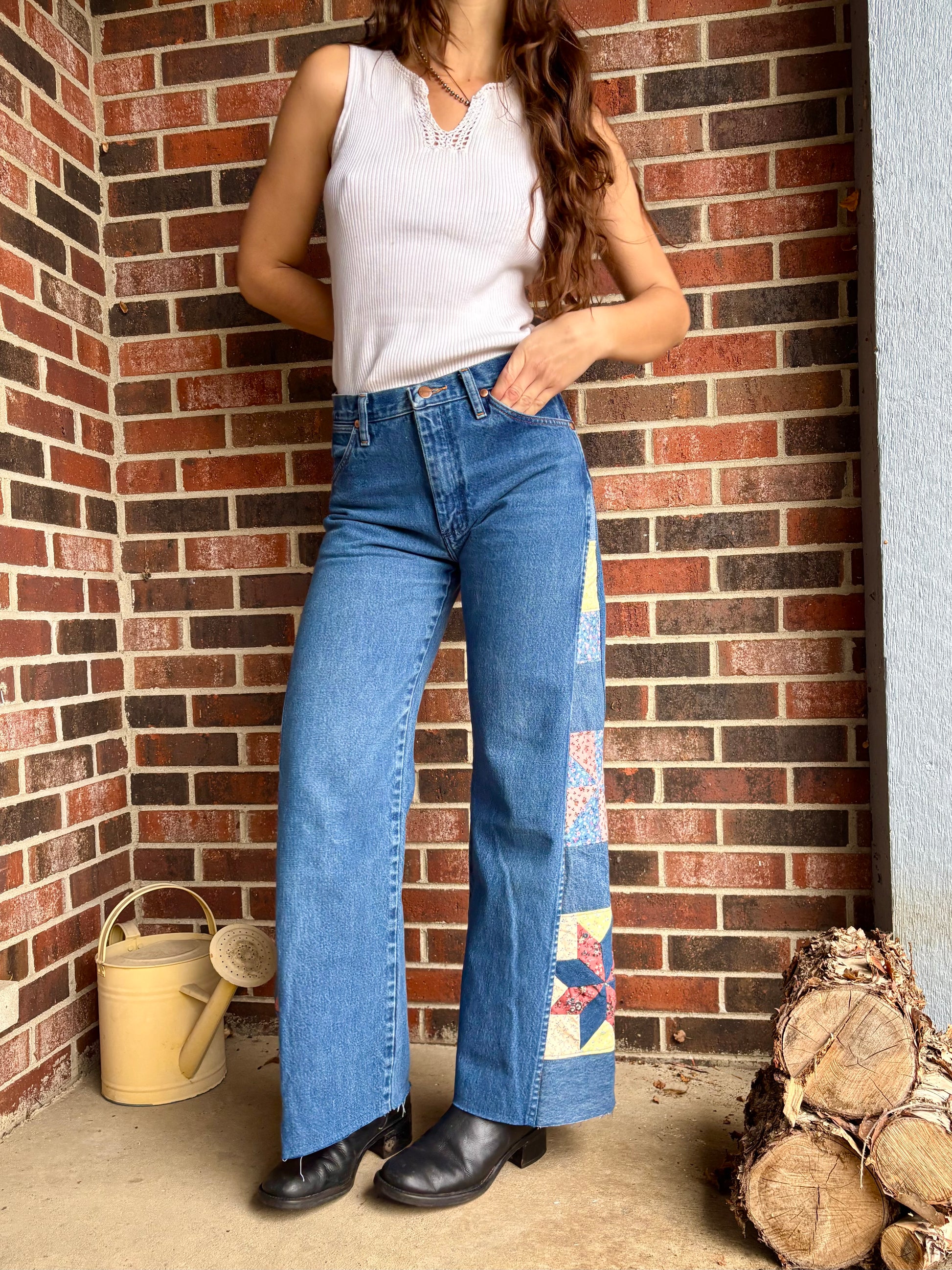 - The softest medium wash Wranglers, converted into a wide-leg fit, in lovely worn-in condition