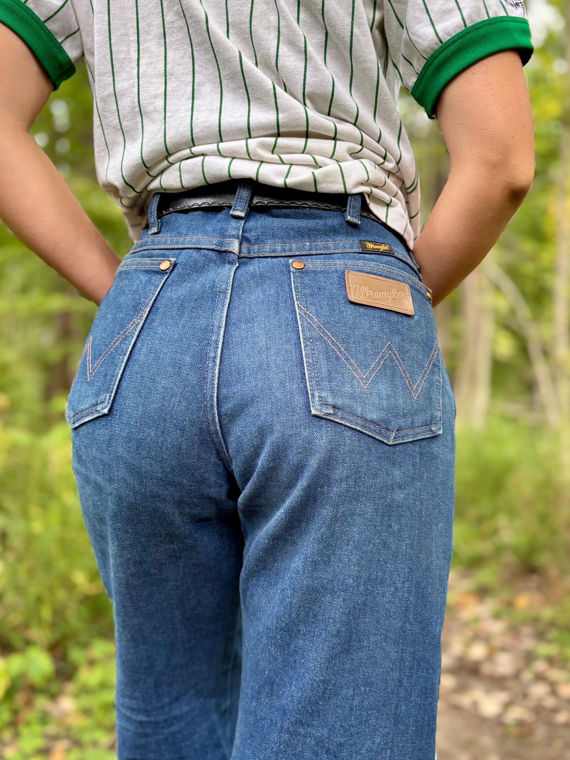 - Vintage Wranglers with lovely faded patina on legs